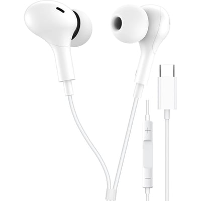 TTech Type C Wired Headphones USB-C Earbuds Earphones Compatible with iPhone 16 Pro Max / 16 Pro / 16 Plus, for Samsung Galaxy S25/S24/S23/S22/S21 Ultra, for Google Pixel 8/7/6/6a, Universal, White